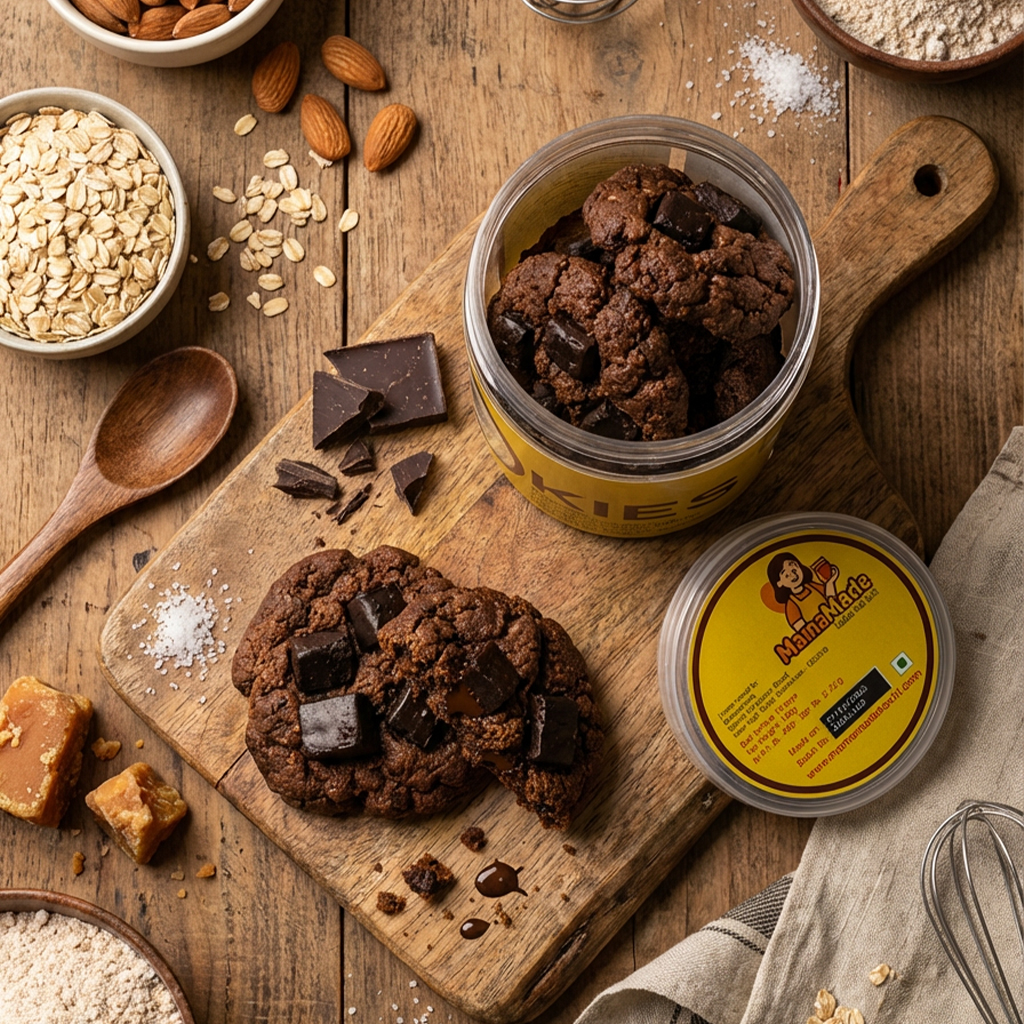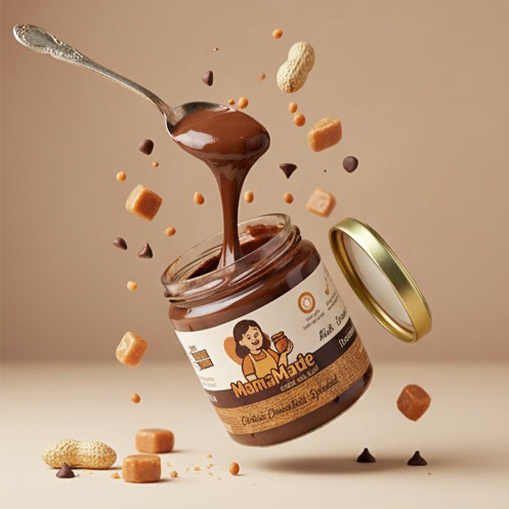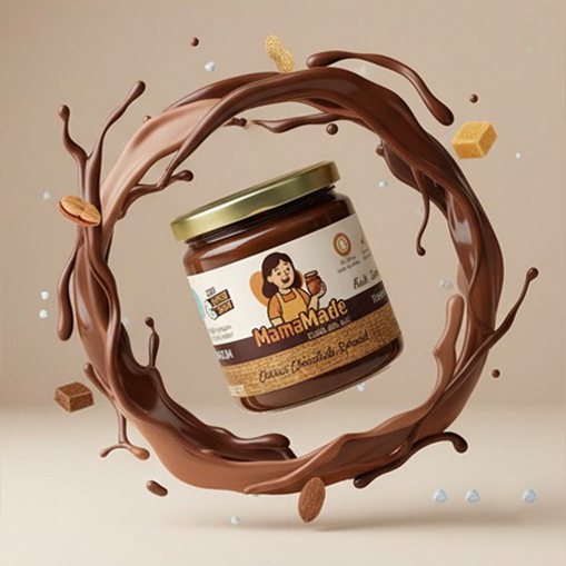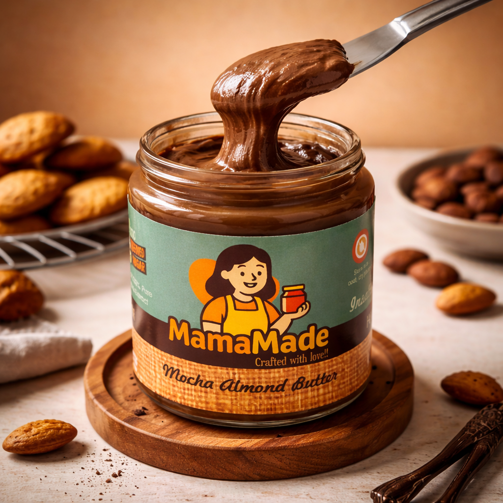 Made with the finest natural ingredients like premium almonds, rich cashews, and pure desi ghee, MamaMade delivers a smooth, creamy texture and a deeply satisfying chocolate flavor – all while nourishing your body. We say no to refined sugar, palm oil, and artificial additives, because we believe real taste comes from real ingredients.